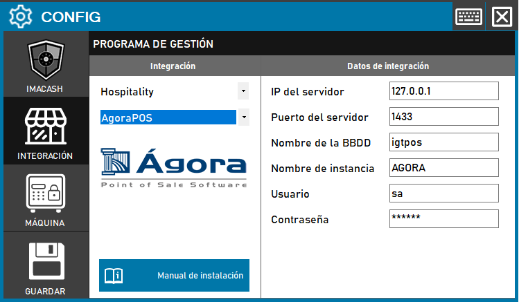 - IP del servidor: Introduce la dirección IP del servidor donde está instalado Agora POS(ejemplo: 127.0.0.1 para servidor local)
