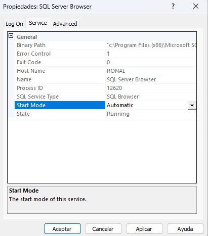 - En la pestaña Service (Servicio) , cambia el Start Mode (Modo de Inicio) a Automatic .