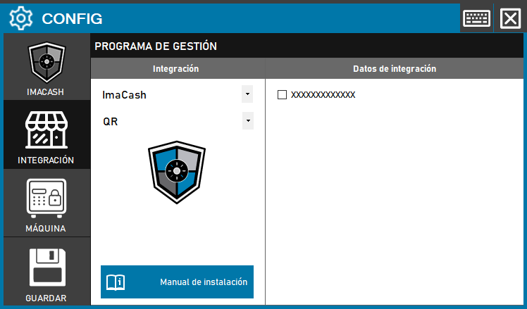 - Acceda al menú CONFIG → INTEGRACIÓN en el panel lateral de ImaCash.